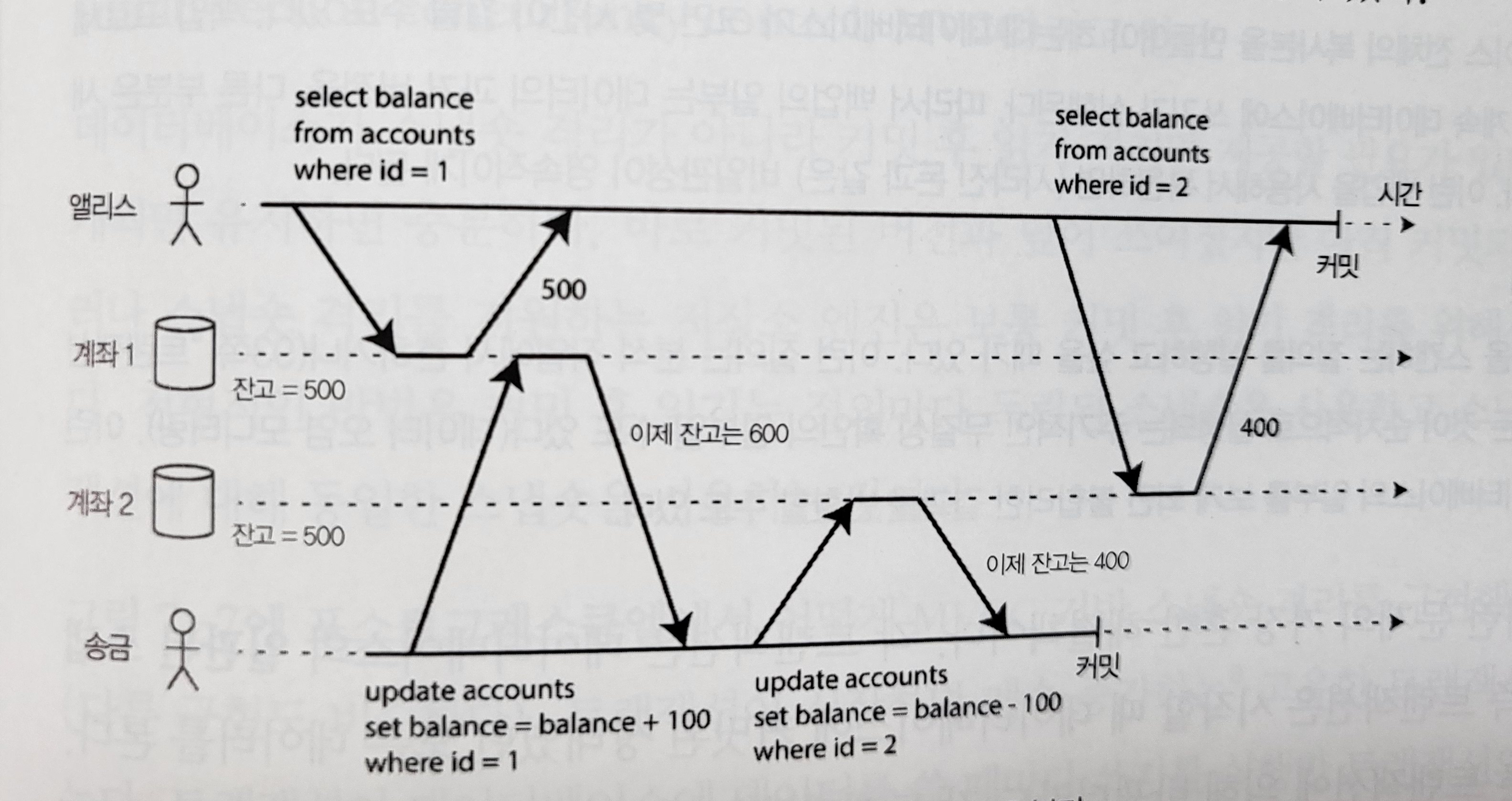 - 위와 같은 경우 몇 초 후 새로고침하면 일관성 있는 계좌를 볼 수 있으나 어떤 상황에서는 이런 비일관성을 감내할 수 없는 경우도 있다.