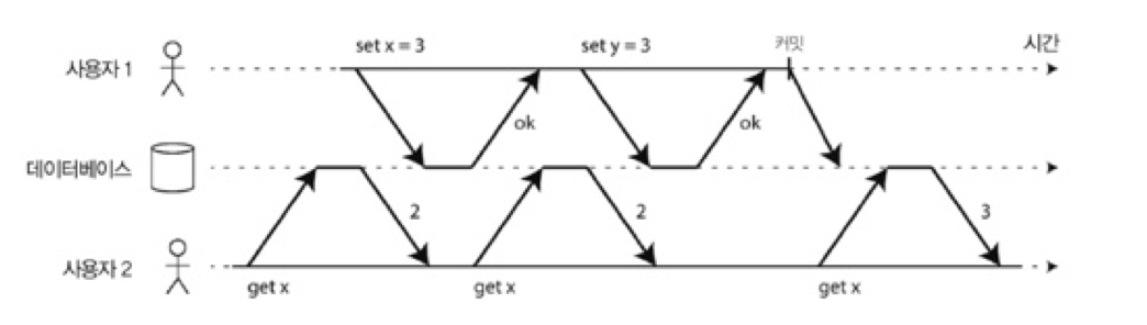 더티 읽기 방지: 사용자 2는 사용자 1의 트랜잭션이 커밋된 후에야 x의 새 값을 보게 된다.