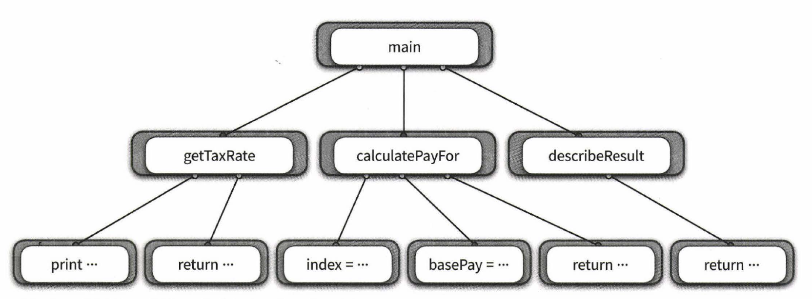 - 그리고 직원의 이름은 인자로 받는다. 따라서 급여 관리 시스템의 최상위 문장을 다음과 같은 함수 정의로 바꿀 수 있다.