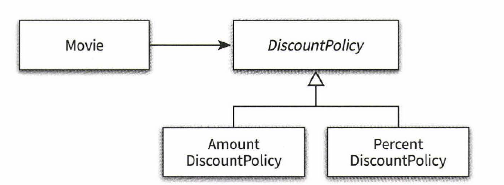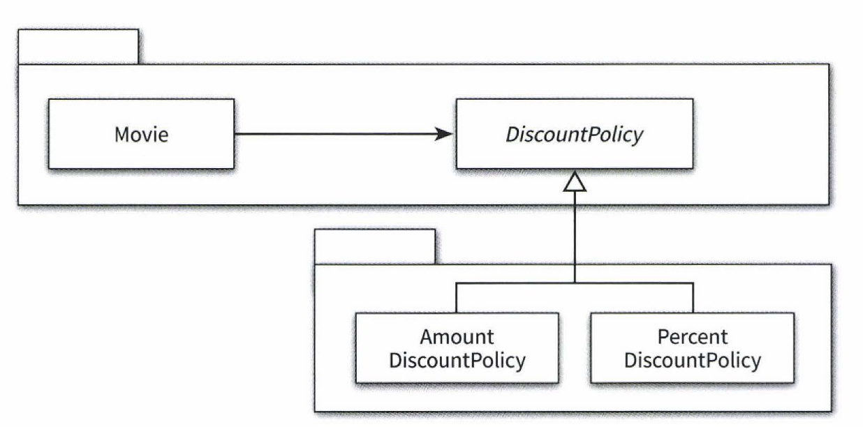 - 의존성에 따라 Movie는 DiscountPolicy를 수정하지 않을 경우에는 영향을 받지 말아야 한다.