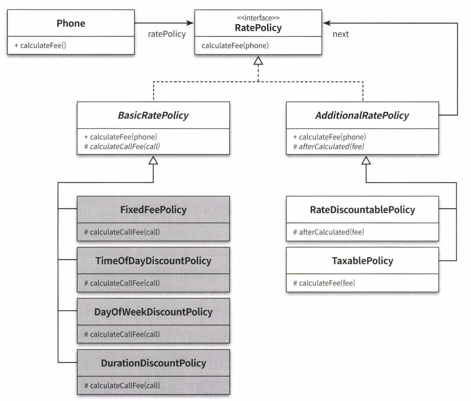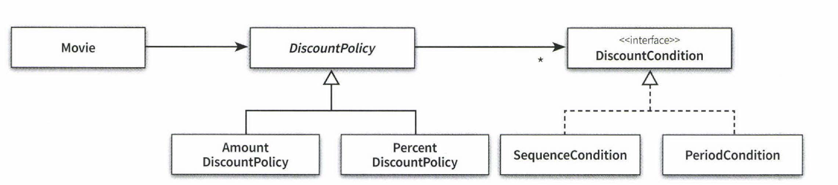 - 할인 정책의 구체적인 종류는 메시지를 수신한 객체의 타입에 따라 달라지며 실행할 메서드를 결정하는 것은 메시지를 수신한 객체의 책임이다.
