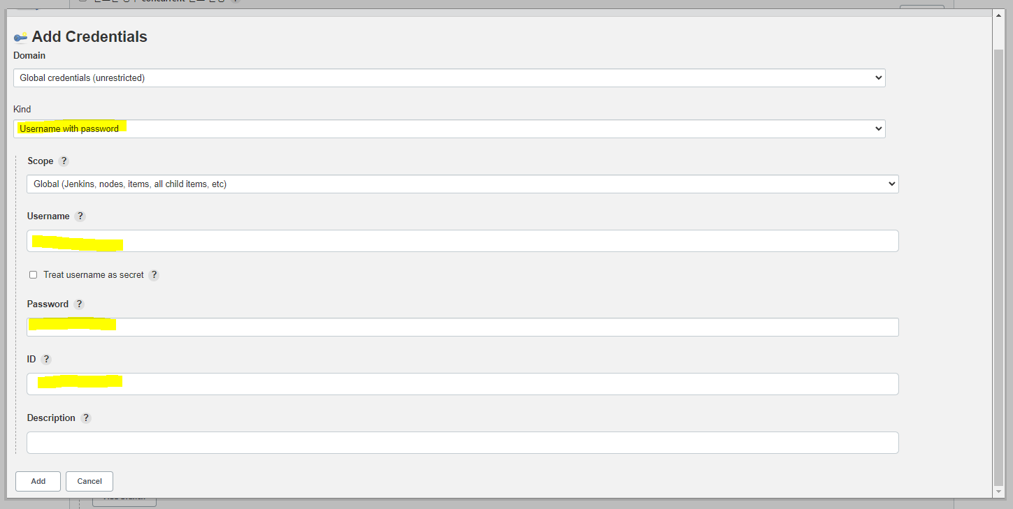 ID는 생성되는 Credentials id로, 내가 사용하고 싶은 단어를 입력해주었더니