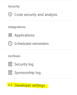 settings에서 좌측 메뉴바 하단의 Developer settings를 클릭