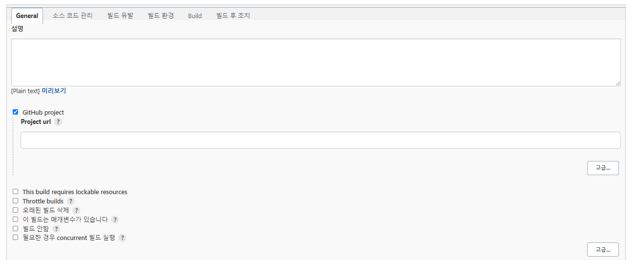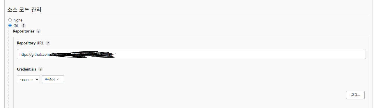 소스 코드 관리 - Git - Repositories URL 에 아까 위에서 적어준 깃허브의 리파지토리 주소를 입력해준다.