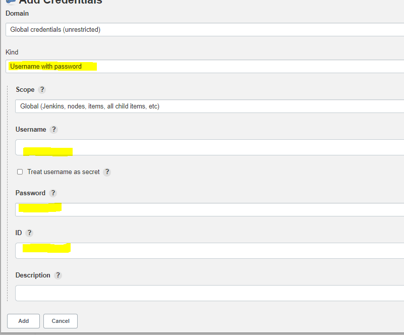 ID : credentials 이름으로, 내가 원하는 단어를 적으면 된다.