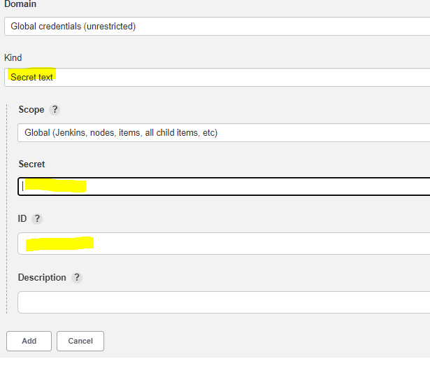 이번에는 Kind : Secret text 클릭 후