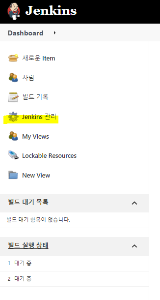 Dashboard의 Jenkins 관리 클릭