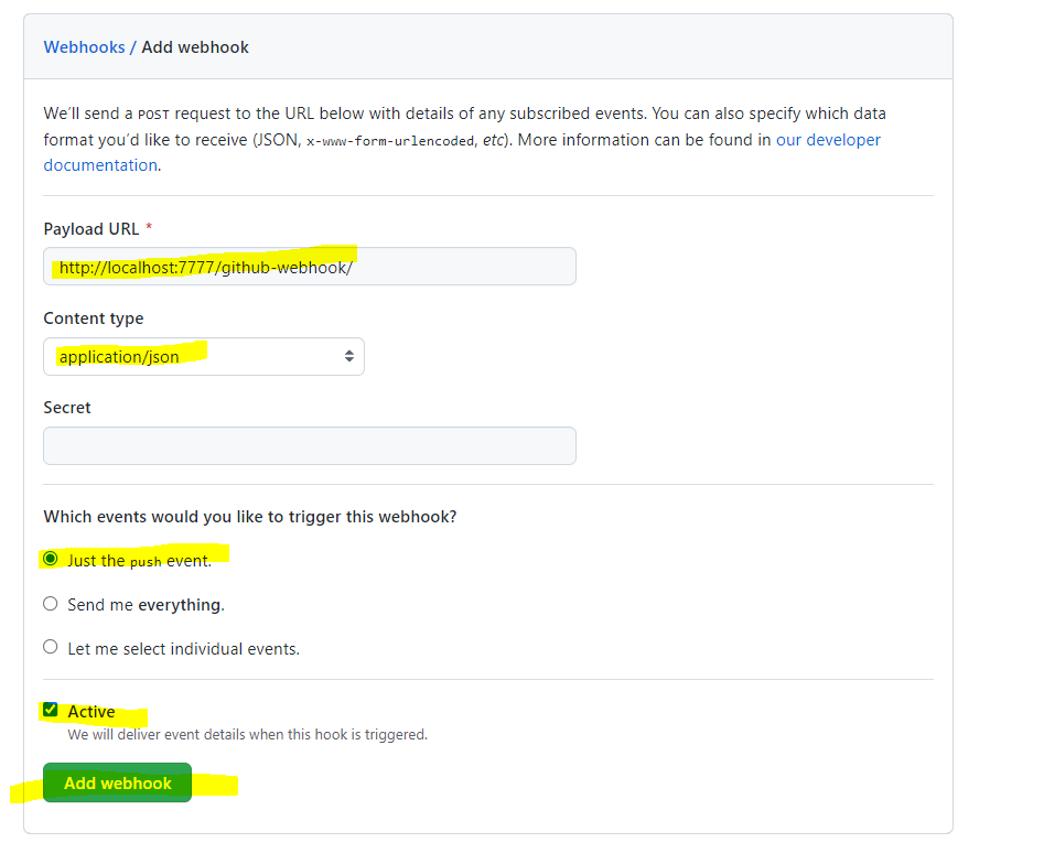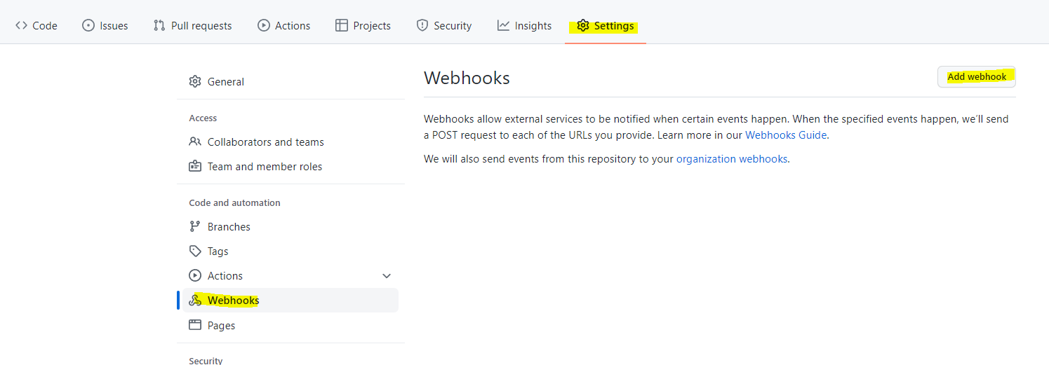 settings - webhooks - add webhook 클릭