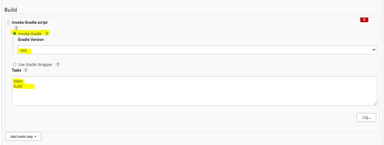 아래 Build 설정