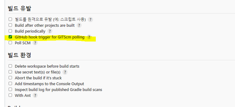 구성에서 내려오다 보면 빌드 유발이 있다