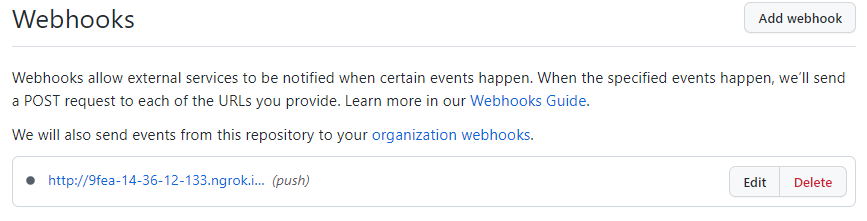 webhooks이 생성되었다.