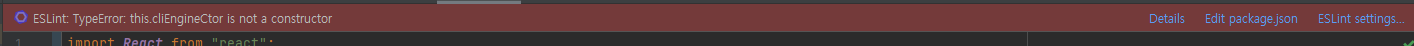 ESLint 8.0 이상 버전을 사용할 경우, ESLint 가 버전업이 됨에 따라 기존 클래스가 삭제되었기 때문에 기존에 사용중인 WebStorm이나 IntelliJ 등에서 다음과 같은 에러가 발생한다고 한다.