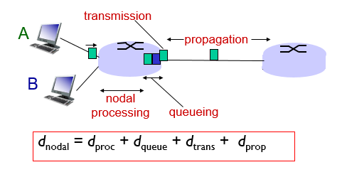 - Delay = L / R (패킷의 크기에 비례하고 링크의 bandwidth에 반비례함)