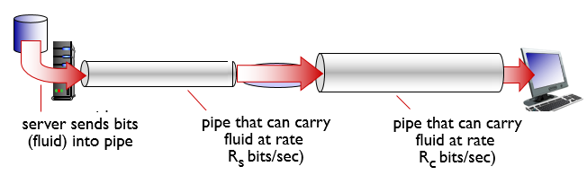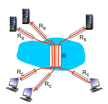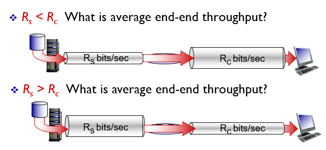 - 두개의 다른 링크가 있다면 그중 작은 링크에 의해 throughtput이 결정됨.