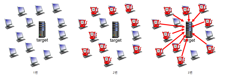 2. 타겟 서버 주위의 컴퓨터들을 감염시킴 (Botnet)