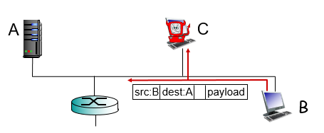 - C는 B에서 A로 보내는 패킷을 훔쳐 볼 수 있다.