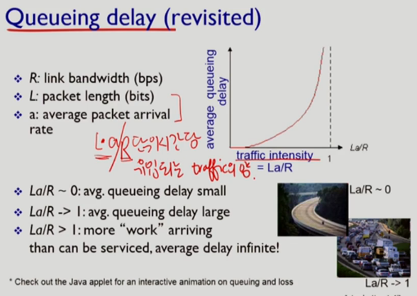 -> why? a는 평균값이기 때문에 L * a > R 인 경우 traffic intensity가 높아 무한 딜레이 발생