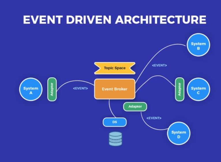 Event Broker는 System A~D(Consumer)와 DS(Consumer)에 적절하게 이벤트를 분배한다.