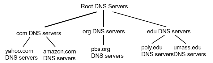 DNS는 계층적 구조로, Root DNS Server - top-level domain(TLD) Server - authoritative DNS Server 의 3계층으로 이루어져있다.