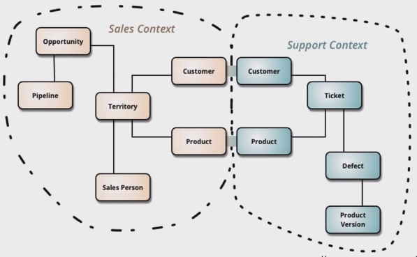 - 요구사항으로부터 Domain과 이하 Entity를 정의하고 그 관계를 경계와 함께 추상화한 모식도