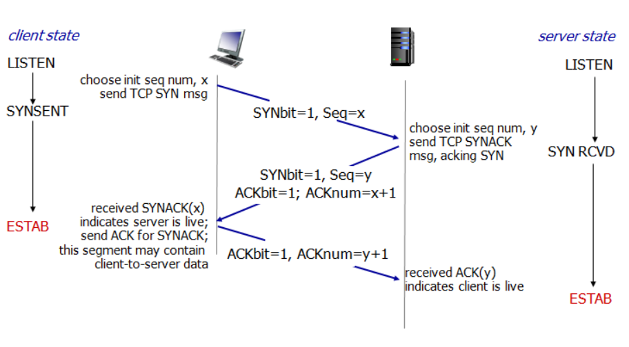 SYN : (SYNbit=1, Seq = y) 나도 연결을 맺고싶어