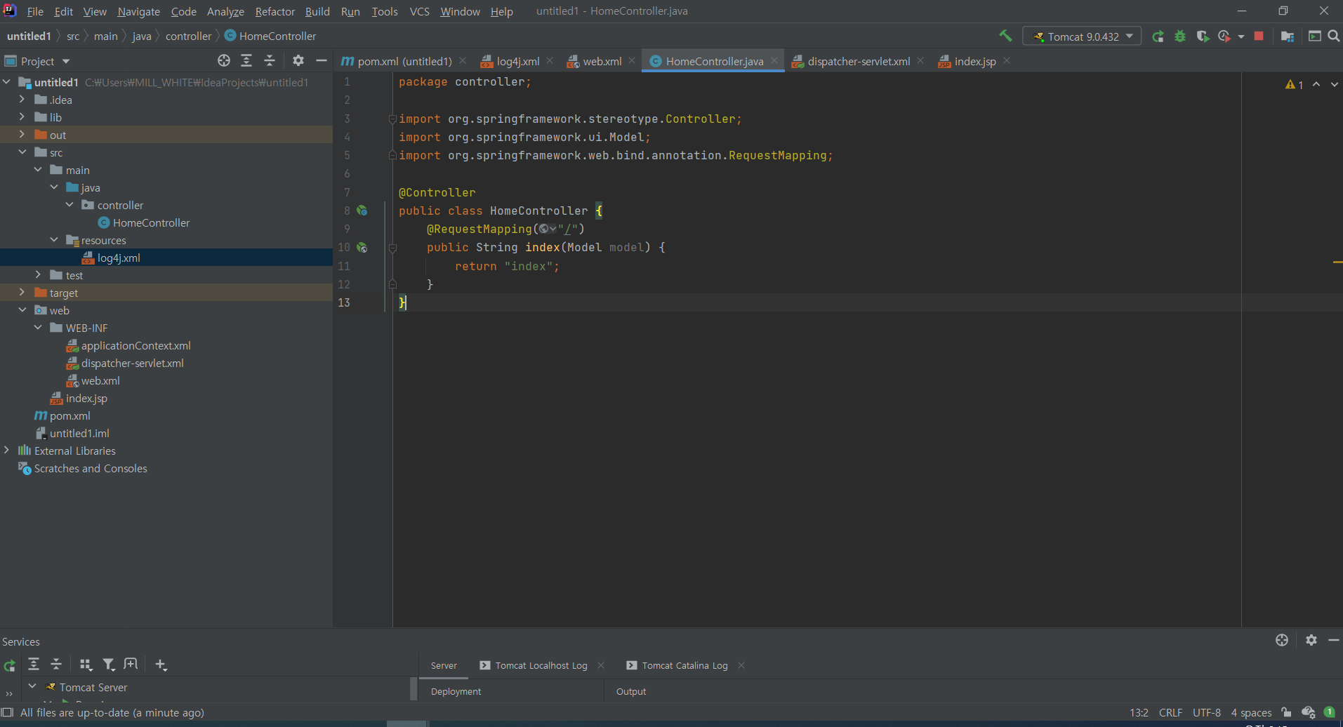 그리고 해당 패키지에 HomeController.class 파일을 생성하고 아래 코드를 입력해주세요.