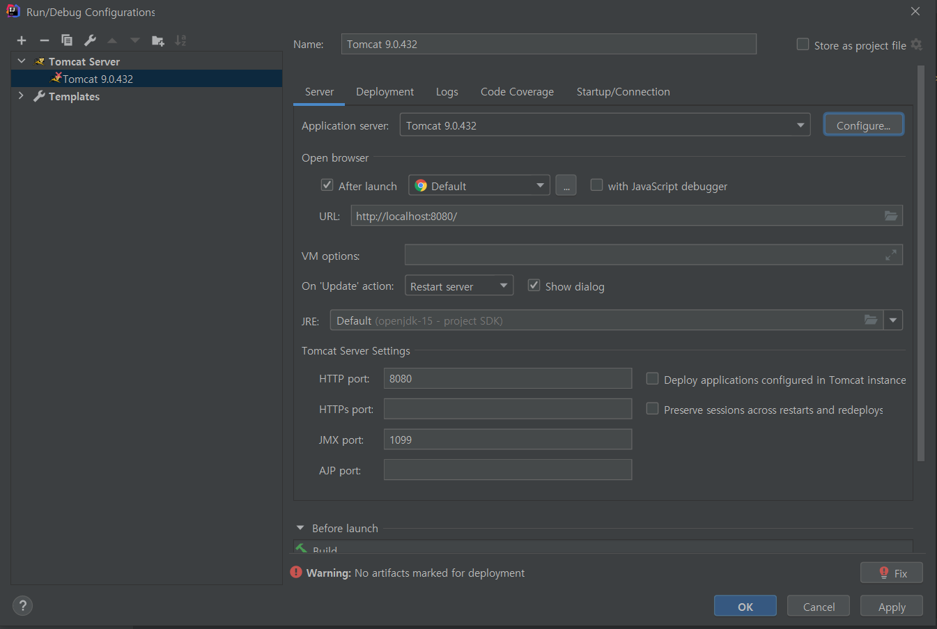 톰캣 설정은 끝났습니다.