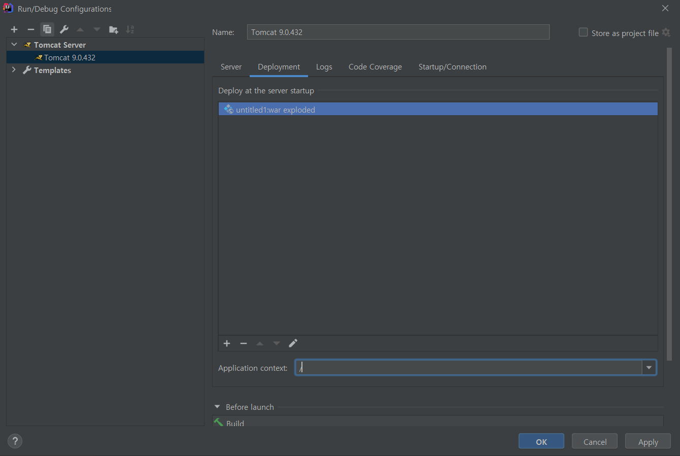 Deployment 화면으로 이동되면 Application context를 /로 입력해주세요.