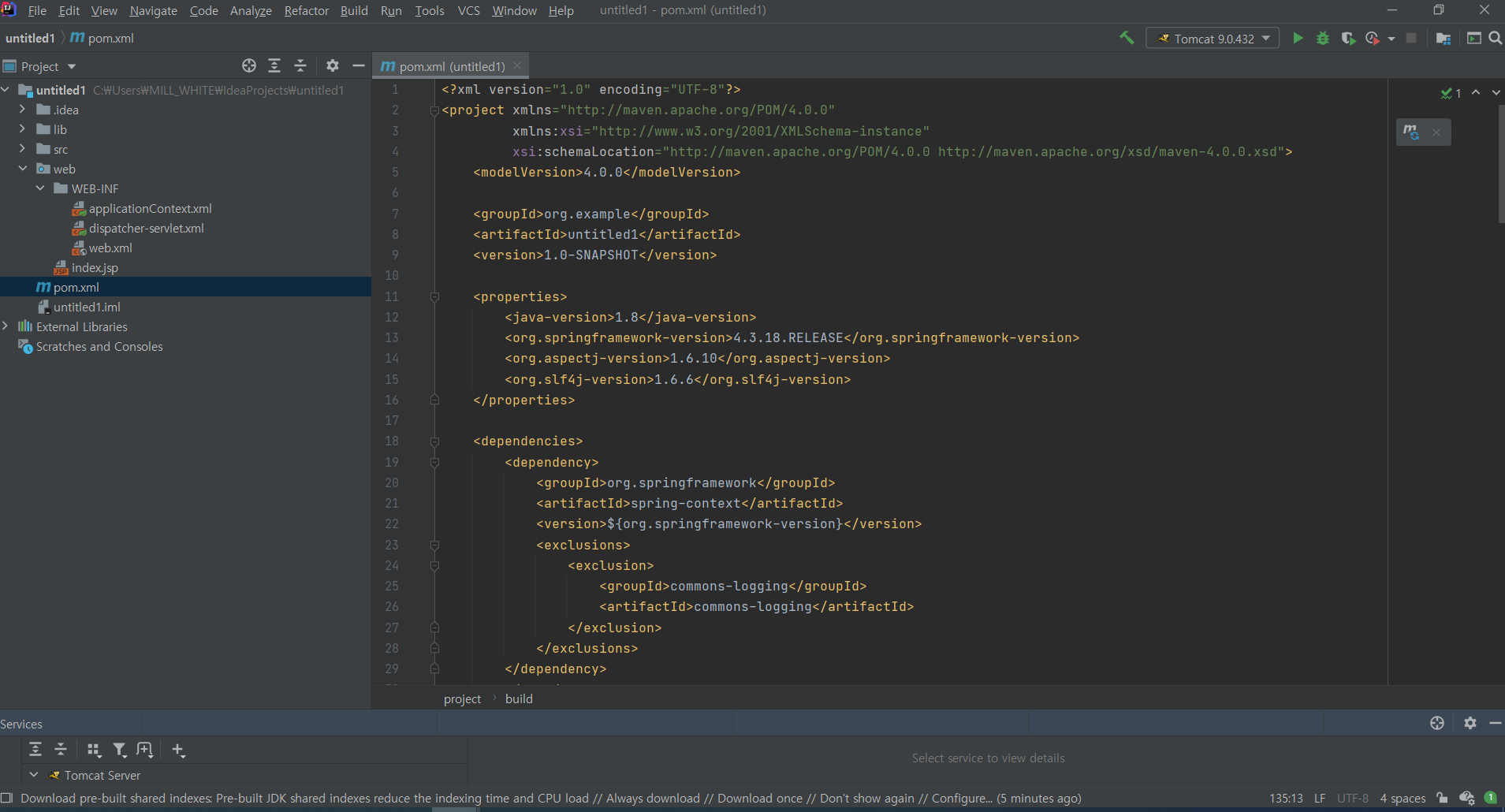 따라하는 도중에 자꾸 pom.xml에서