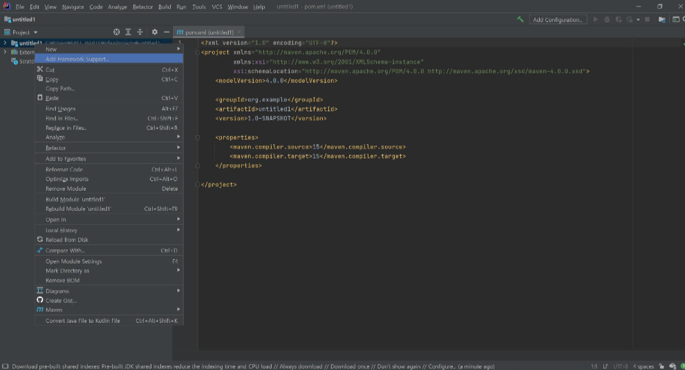 Add framework Support.. 를 클릭합니다.