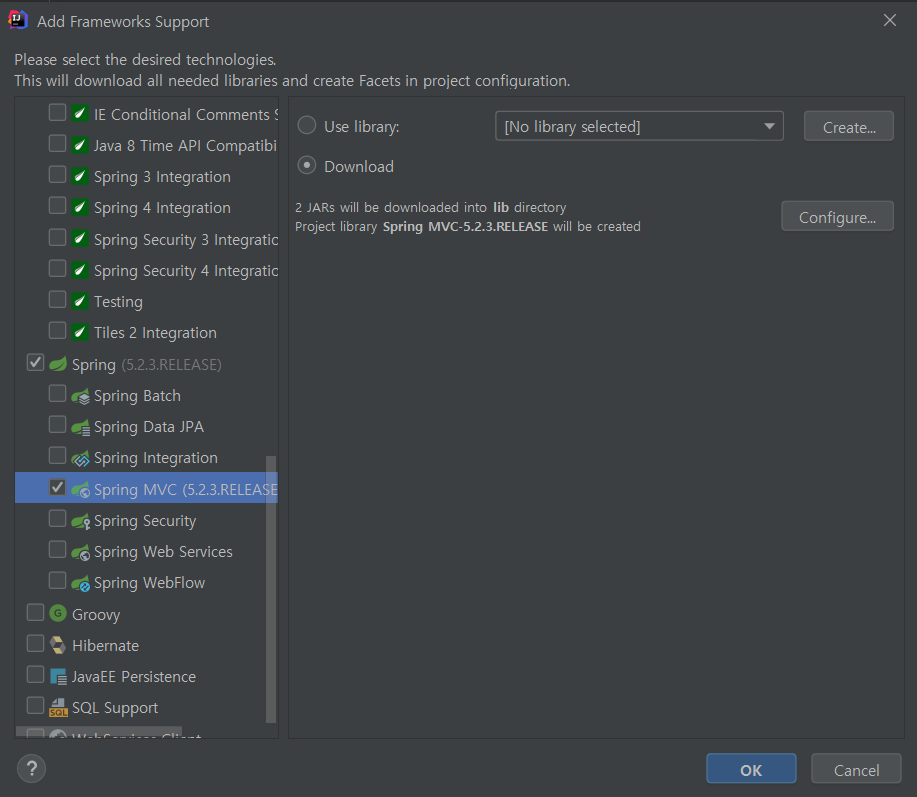 Spring MVC (5.2.3.RELEASE) 를 선택해 주세요.