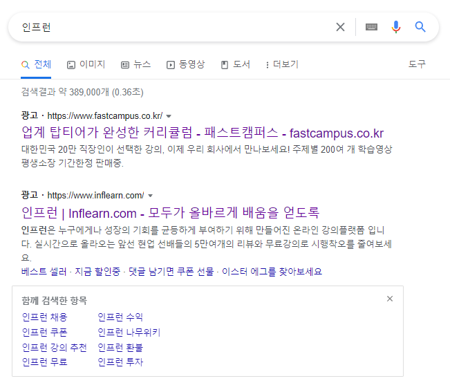 인프런 키워드를 쳤는데