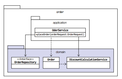 도메인 서비스의 개수도메인 서비스가 많거나 엔티티나 밸류와 같은 다른 구성요소와 명시적으로 구분하고 싶다면 domain 패키지 밑에 domain.model, domain.service, domain.repository와 같이 하위 패키지를 구분하여 위치시켜도 된다.