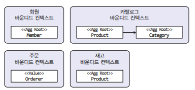 바운디드 컨텍스트는 도메인 모델을 구분하는 경계가 되기 때문에 구현하는 하위 도메인에 알맞은 모델을 포함한다. 같은 사용자라 하더라도 주문 바운디드 컨텍스트와 회원 바운디드 컨텍스트가 갖는 모델이 달라진다.