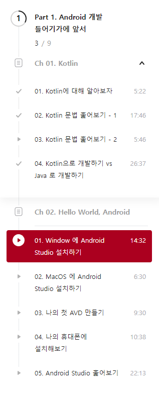ch 01.kotlin은 kotlin 문법의 완전 기초강의를 알려준다.