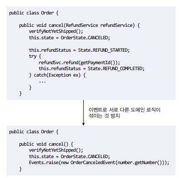 이벤트를 사용하면 서로 다른 도메인 로직이 섞이는 것을 방지할 수 있다.