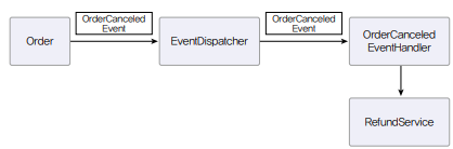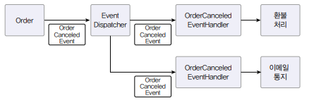 - ex) '주문 취소됨 이벤트'를 받는 이벤트 핸들러는 해당 주문의 주문자에게 SMS로 주문 취소 사실을 통보한다.