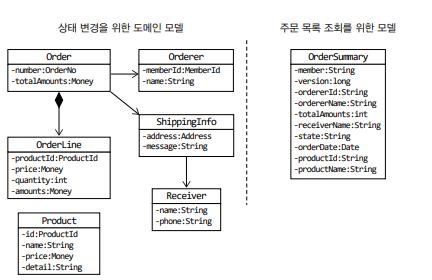 조회 화면 특성상 조회 속도가 빠를수록 좋은데 여러 애그리거트의 데이터가 필요하면 구현 방법을 고민해야 한다. 단일 모델의 여러 애그리거트에서 데이터를 가져와 출력하는 기능을 구현하기에는 고려할 게 많아서 구현을 복잡하게 만드는 원인이 된다. 이런 구현 복잡도를 낮추는 간단한 방법이 있는데 그것은 바로 상태 변경을 위한 모델과 조회를 위한 모델을 분리하는 것이다.
