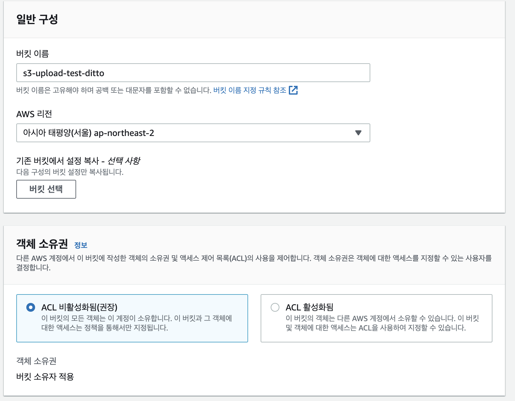 버킷 이름을 지정