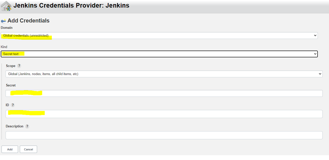 ID는 생성되는 Credentials id로, 내가 사용하고 싶은 단어를 입력해주었더니