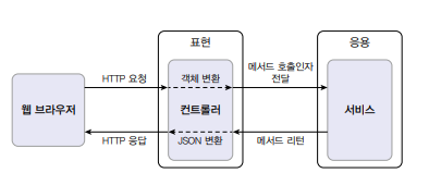 - 표현 영역은 사용자가 전송한 데이터 형식이 올바른지 검사하고 문제가 없다면 데이터를 응용 서비스가 요구하는 형식으로 변환해서 전달하여 응용 서비스에 기능 실행을 위임한다. (ex. Controller)